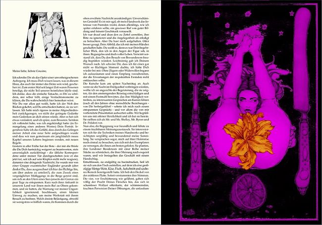 Coffee table book mit einer reich illustrierten fantastischen Erzählung über einen Puppenspieler und die von ihm geschaffene, zu Bewusstsein und Leben erwachende weibliche Marionette. Sie wird zum Spielball seiner Begehrlichkeiten, doch ihr Körper verwandelt sich für begrenzte Zeiträume in Fleisch und Blut, und so gelingt es ihr, der bedrängnisvollen Situation zu entfliehen. Es folgt eine abenteuerliche Reise, an deren Ende sie jedoch, unterstützt von einer geheimnisvollen, blauhaarigen Frau, ihrem geflügelten Freund Romeo und ihrer großen Liebe, dem gewaltigen Riesen Mangiafuoco, endlich ihre Freiheit, Selbstbestimmung und Unabhängigkeit findet. Nach einer Idee von Anja Molendijk.