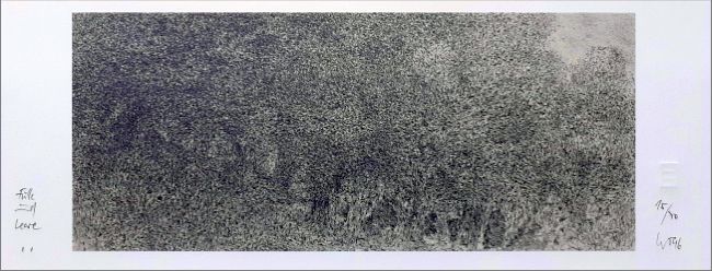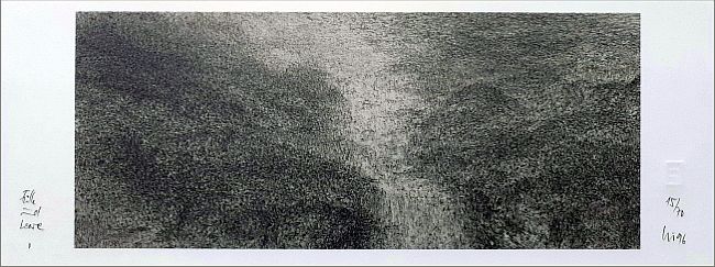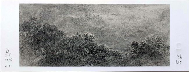 Suite der Orig.-Flachdruckgrafiken zu „Die Quelle im Pfirsichblütenwald“. In einfacher Bütten-Faltmappe, Bildformat der Grafiken jeweils 14 x 33 cm, Papierformat 16 x 42 cm, Auflage 70 Exemplare, einzeln betitelt, datiert, nummeriert und signiert
