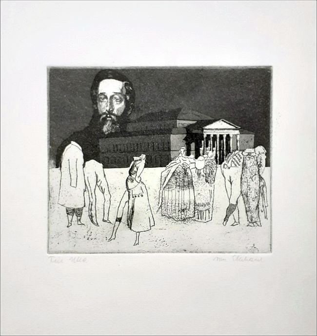 Bildformat 13,5 x 16,5 cm, Papierformat 27 x 26 cm, keine Auflage, nur mit Vornamen („von Eberhard“) signiert