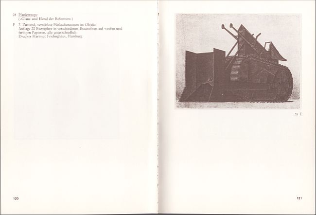 Broschur, Format 19 x 14 cm, 15 Schwarzweiß-Abbildungen (Planierraupe, Schellenelement, Spannzange, Schlauch im Kasten, Schreibmaschine „Titan“, Fahrrad u.a.), 34 Seiten, ein bzw. drei leichte(r) Knick(e) an oberer und unterer vorderer Deckelecke