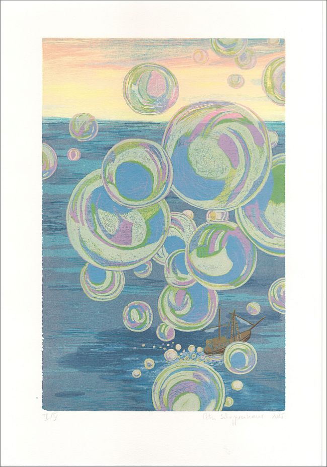 13-farbige Einzelgrafik, in der Technik des Reduktionsholzschnitts. Bildformat 22,5 x 30 cm, Papierformat 30 x 40,5 cm, Auflage 5 Exemplare, römisch nummeriert und signiert