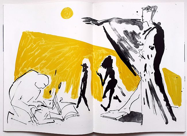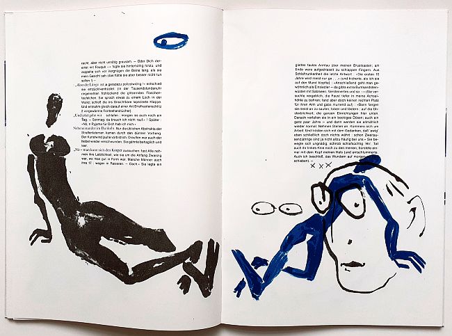 10. Druck der burgart presse 1994 in Zusammenarbeit mit der Quetsche, Verlag für Buchkunst, Witzwort. Mit einer lose beiliegenden doppelblattgroßen Zeichnung sowie 2 ebenfalls lose beiliegenden Orig.-Lithografien von Helge Leiberg (Nummerierung des Buchs auf II, beiliegende Lithografien auf IX und XIV) und mit 39 überwiegend farbigen, vielfach ganz- bzw. doppelseitigen Lithografien von Leiberg illustriert. 47 Seiten, Buchformat 47,5 x 34 cm, Halblederbindung, Schuber, Handsatz, Handbindung. Im Impressum von Helge Leiberg signiert. Verlagsfrisch