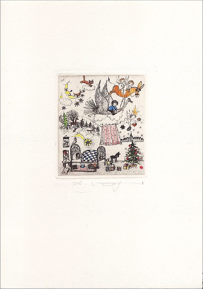9,2 x 8,2 cm auf Bütten 27 x 19 cm, signiert