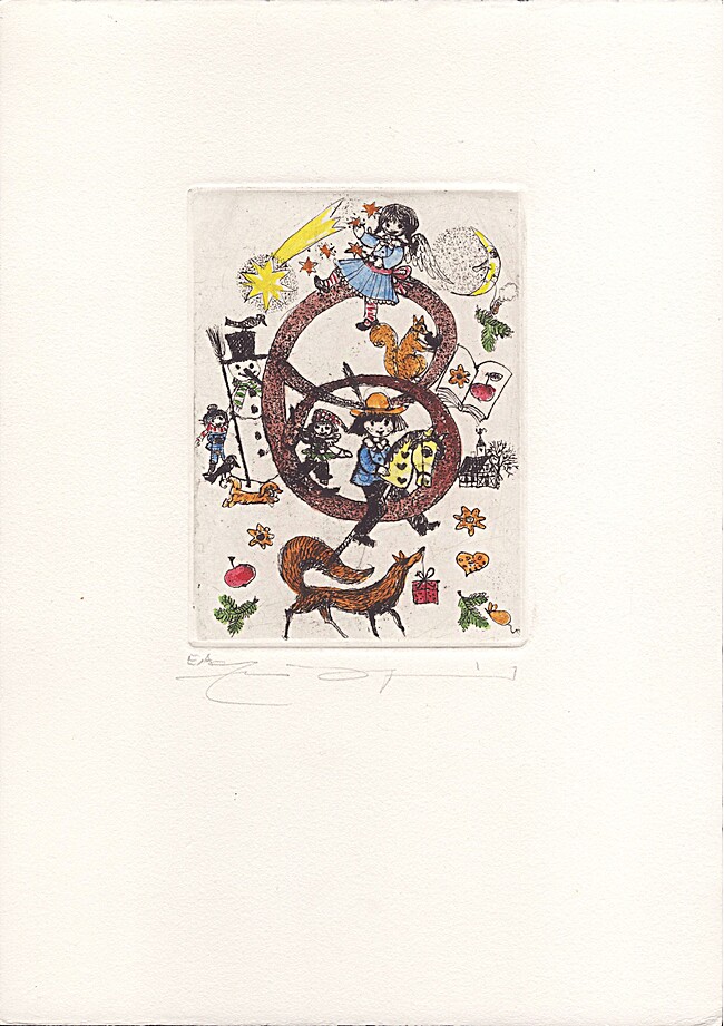 12 x 9 cm auf Bütten 27 x 19 cm, signiert
