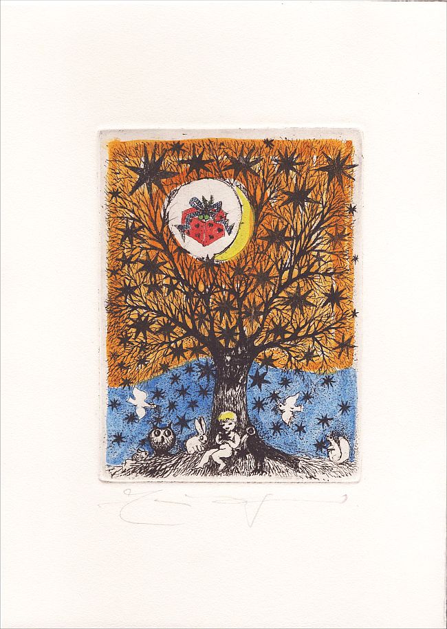 Klappkarte, 12 x 9 cm auf Bütten 21,2 x 15,2 cm, signiert