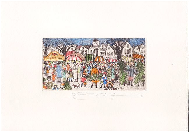 7,4 x 14,5 cm auf Bütten 19 x 27 cm, signiert
