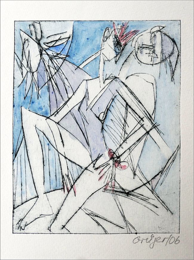 Orig.-Kaltnadelradierung, aquarelliert