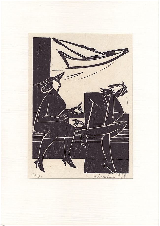 zum Gedichtband „Die Zaubertrommel“ von Erich Fitzbauer aka Hieronymus Zyx. Fest montiert in aufklappbarem Passepartout; Format 27 x 20 cm, Auflage 200 Exemplare, hier ein mit P.D. bezeichneter, vom Künstler selbst gedruckter Probedruck, signiert