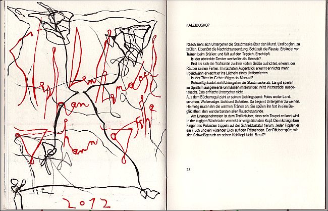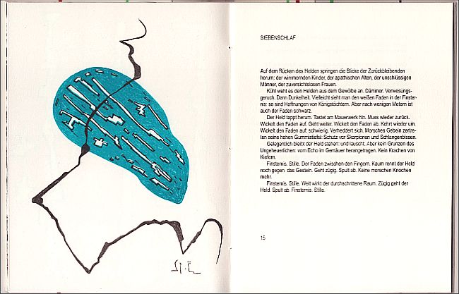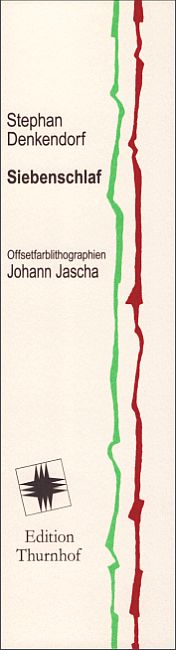 Zehn Erzählungen von Stephan Denkendorf mit 10 ganz- und einer doppelseitigen Orig.-Flachdruckgrafik/en (im Druckvermerk als „Offsetfarblithografien“ bezeichnet) von Johann Jascha. Broschur mit originalgrafischem Schutzumschlag und originalgrafischem Lesezeichen, Fadenheftung, Format 22 x 17 cm, 40 Seiten, Auflage 333 Exemplare, im Impressum von Denkendorf und Jascha signiert und nummeriert