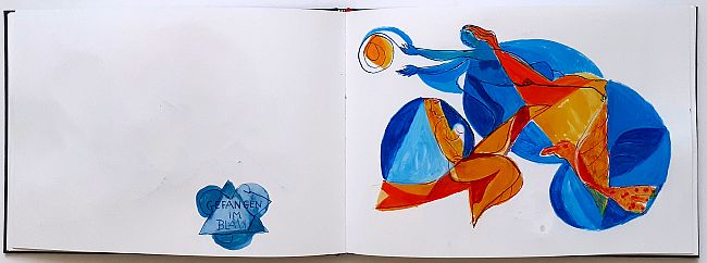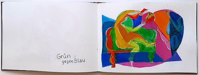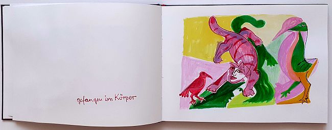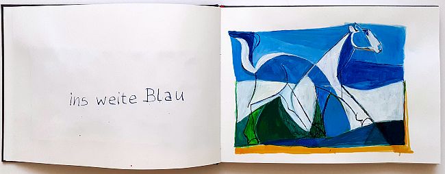 80 Seiten mit 38 ganzseitigen farbigen Zeichnungen und handschriftlichen Titeln. Hardcover, Ganzleinen-Einband, Lesebändchen, Querformat 21,5 x 30 cm, im Impressum von Georg Koenigstein datiert und signiert
