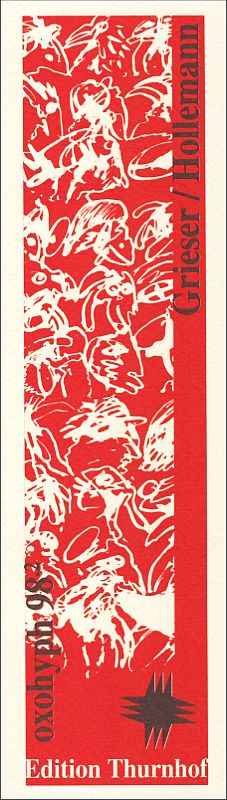 Essay von Dietmar Grieser, in dem er interessant und in der ihm eigenen Grundlagenforschung erzählt, wohin alte Worte, die wir nicht mehr verwenden, verschwinden und woher die neuen kommen. Mit 10 ganzseitigen Flachdruckgrafiken (im Druckvermerk als „Offsetfarblithografien“ bezeichnet) in Sepia und Zinnober von Bernhard Hollemann. Broschur, originalgrafischer Schutzumschlag, 40 Seiten, Fadenheftung, Format 22 x 17 cm, Auflage 400 Exemplare. Im Impressum von Grieser und Hollemann signiert und nummeriert