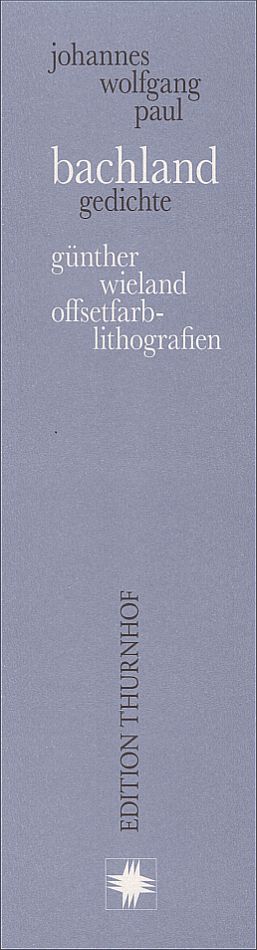 24 bisher unveröffentlichte Gedichte um Johann Sebastian Bach, sein Umfeld in Sachsen, von Johannes Wolfgang Paul 2008/2009 mit dem Fahrrad erkundet. Ergänzt durch Gedichte aus „das neue orgelbüchlein“, hg. 2008 von Dr. J. Diethart, erscheint diese Erstausgabe zum 70. Geburtstag des Autors (März 2019), Erstausgabe. Mit 7 Orig.-Flachdruckgrafiken (im Druckvermerk als „Offsetfarblithografien“ bezeichnet), davon eine doppelseitig von Günther Wieland. Broschur, originalgrafischer Schutzumschlag, originalgrafisches Lesezeichen, Fadenheftung, Format 22 x 17 cm, 40 Seiten, Auflage 400 Exemplare, im Impressum von Paul und Wieland nummeriert und signiert und nummeriert