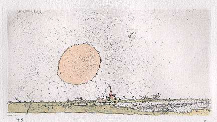 Dreizehn nummerierte und einzeln signierte Radierungen in leinenbezogener Mappe, davon eine Radierung handkoloriert und eine weitere auf ein wahrscheinlich mehr als hundert Jahre altes handgeschöpftes Bütten gedruckt. Papierformat der Radierungen je 27 x 34 cm, Druck Dieter Bela, Berlin.