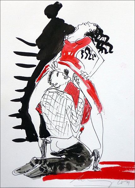 Mischtechnik, Tusche und Feder auf Bütten, signiert, Format: 24 x 32 cm