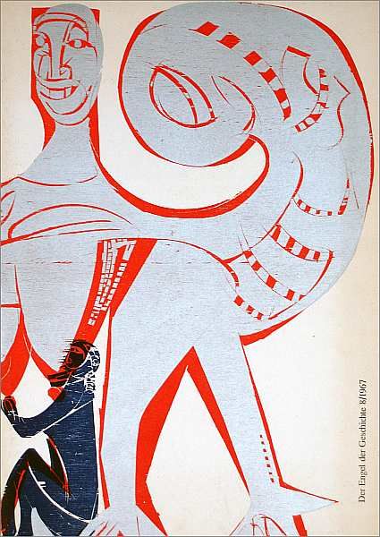 Der Engel Griechenlands. 16 S. mit 6 (inkl. Umschlag) ganzseitigen Orig.-Farbholzschnitten von HAP Grieshaber sowie einer Zinkätzung. Gedichte von Johannes Poethen und Margarete Hannsmann zu Griechenland. Eines der schönsten Hefte der Reihe, von sehr guter Erhaltung, praktisch verlagsfrisch!