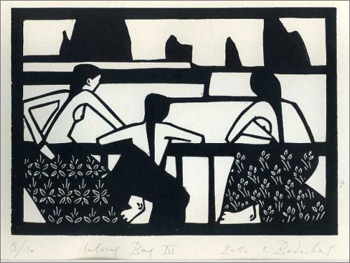 Genau dies hat knapp 30 Jahr später die 1977 in Berlin geborene Künstlerin Henriette von Bodecker getan und bezaubernd poetische Bilder mitgebracht, die hier von den Original-Druckstöcken abgezogen wurden. Wenn Ihnen der Name Helmut Richter noch nicht geläufig ist: er schrieb den Text "Über sieben Brücken musst Du geh'n"… Henriette von Bodecker war 2004 Gastdozentin für Illustration am International Art College Zhengzhou, VR China.