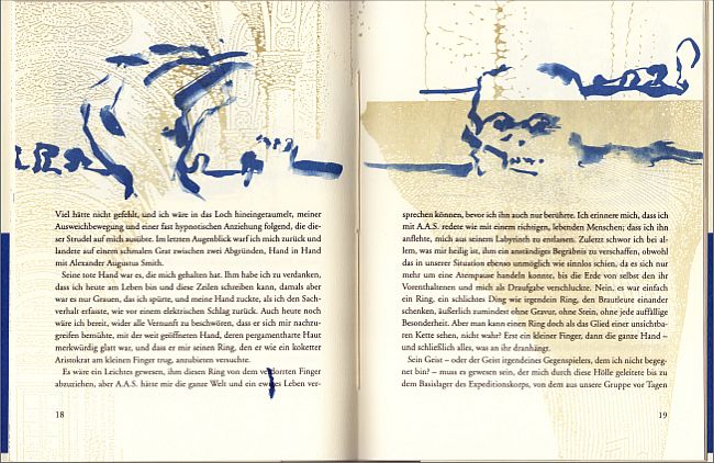 Eine Erzählung von Peter Marginter, an der er viele Jahre lang schrieb, in Erstausgabe. Mit Orig.-Flachdruckgrafiken (im Druckvermerk als „Offsetfarblithografien“ bezeichnet) von Herwig Zens. Broschur, originalgrafischer (an den Längskanten leicht beriebener) Schutzumschlag, originalgrafisches Lesezeichen, Fadenheftung, Format 22 x 17 cm, 40 Seiten, Auflage 400 Exemplare, im Impressum nummeriert und von Peter Marginter und Herwig Zens signiert