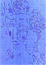 Orig.-Farbholzschnitt/Kunststoffgravur - Blauer Putto