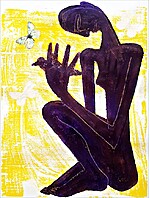 Orig.-Materialdruck/Kreidezeichnung - Blaue Frau I