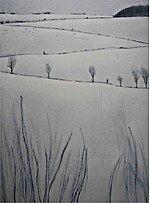 Dass die Künstlerin von der Architektur kommt, findet sich in der eindrucksvollen Räumlichkeit ihrer Bildern wieder. Mag die auch noch so imposant und weit sein: Langs Radierungen kommen nicht ohne eine menschliche Figur aus, die den Maßstab setzt und zeigt, dass die Künstlerin die Landschaft nicht als pour l‘art, sondern als Raum für Menschen begreift. Katja Lang lebt und arbeitet in Chemnitz und Berlin.