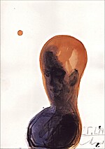 Bleistift, Kohle, Aquarell - Kopf III